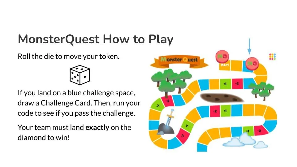 In Module D3, students end the coding year by participating in a fun and creative project, MonsterQuest, that has them code a colorful and thoughtful PixelMonster to play in a MonsterQuest board game. The project has the following requirements: