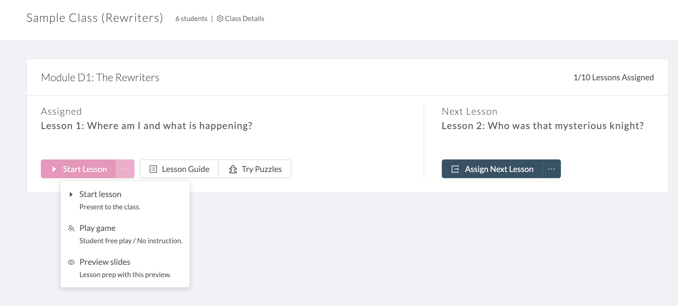 For a more detailed breakdown of each of the 5 phases in Rewriters lessons, check out the “Lesson Structure” section in the Curriculum Overview.